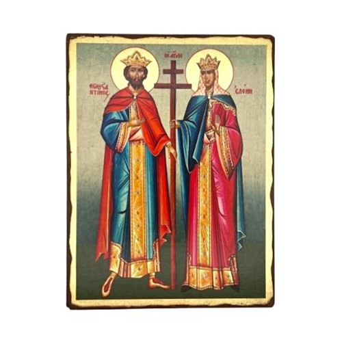 Saints Constantine (Konstantinos) and Helen (Eleni) Silk Screen Icon – Aged Edge Wood